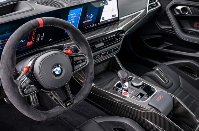 Visualmente, o M2 CS reforça sua identidade de pista com rodas forjadas (19” na dianteira e 20” na traseira), aerofólio ducktail integrado, grade em preto fosco e retrovisores em carbono. O interior traz bancos concha em fibra de carbono com iluminação do logotipo “CS”, couro Merino e acabamentos em CFRP.