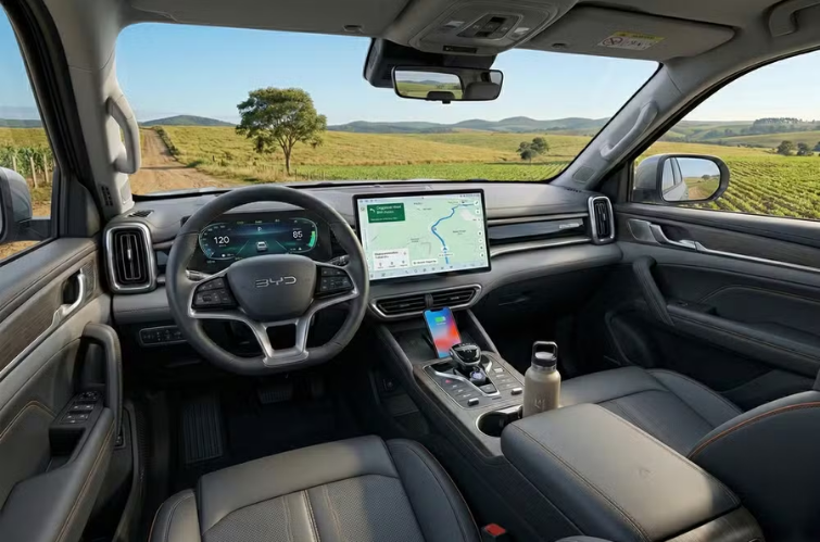 Interior de nova picape média da BYD deve seguir o estilo de outros modelos da marca — Foto: Google Gemini/Autoesporte