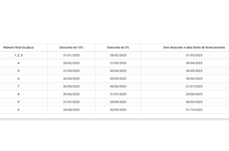• Sem desconto: pagamento até a data-limite, que também é o prazo final para o licenciamento.