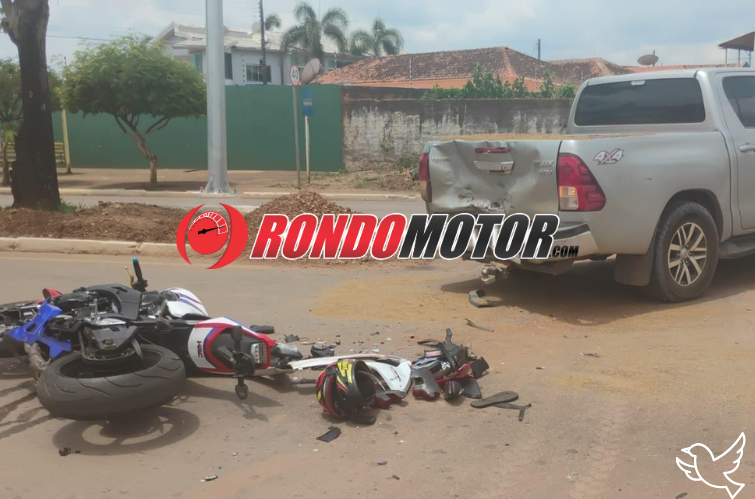 Impacto violento contra caminhonete deixou motociclista gravemente ferido e expôs o lado perigoso da busca por velocidade e liberdade sobre duas rodas.