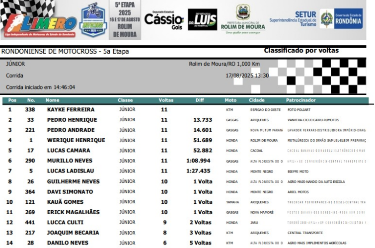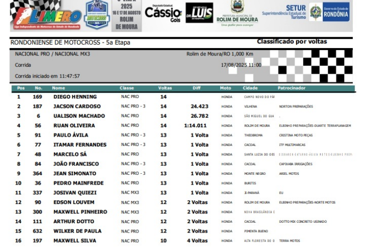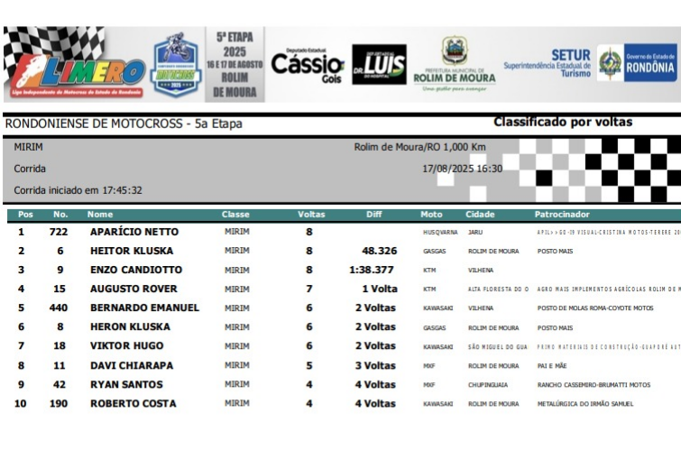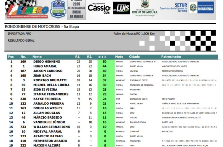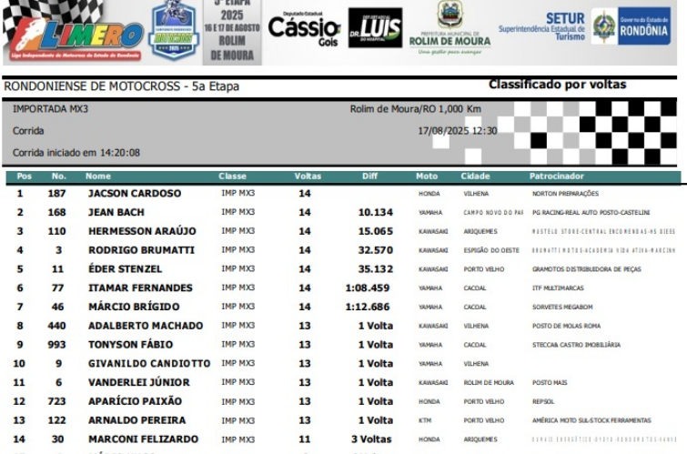 Nesse final de semana a cidade de Rolim de Moura recebeu a 5ª Etapa do Estadual de Motocross, nos dias (16) e (17).