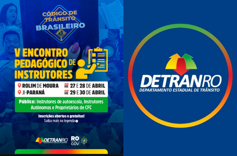 O Departamento Estadual de Trânsito de Rondônia (Detran-RO) está com inscrições abertas para o V Encontro Pedagógico de Instrutores de Trânsito, voltado a profissionais das regionais de Rolim de Moura e Ji-Paraná.