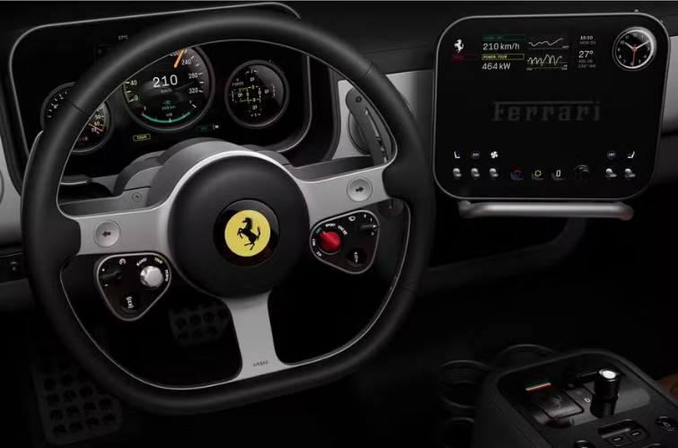 A bateria, integrada ao assoalho, terá capacidade de 122 kWh. A Ferrari afirma que o sistema oferecerá elevada densidade energética, além de suporte para carregamento ultrarrápido de até 350 kW.