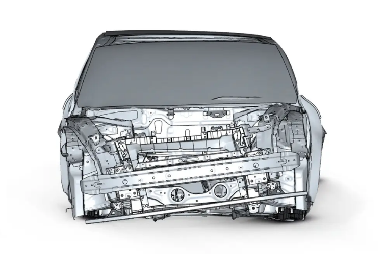 Em caso de impacto frontal, o conjunto mecânico é projetado para deslocar-se para baixo, evitando que o motor invada a cabine e protegendo os ocupantes.
