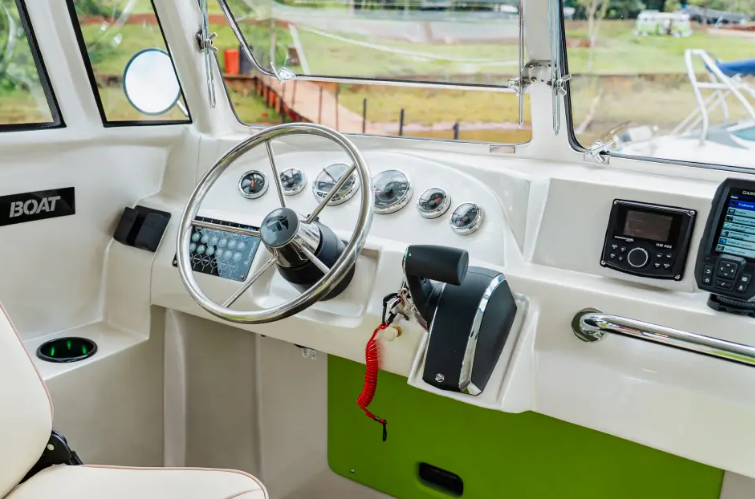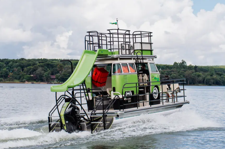 Apesar do visual retrô que remete à Kombi dos anos 70, a embarcação tem recursos dignos de um barco de passeio premium: