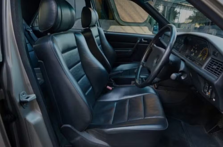 O Mercedes traz motor 2.3 de quatro cilindros e 16 válvulas, com 185 cv e 24 kgfm de torque. O conjunto permite aceleração de 0 a 100 km/h em 7,5 segundos e velocidade máxima de 230 km/h, com câmbio manual de cinco marchas. O exemplar ainda conta com teto solar, bancos de couro, extintor, kit de ferramentas e sistema Becker México de som.