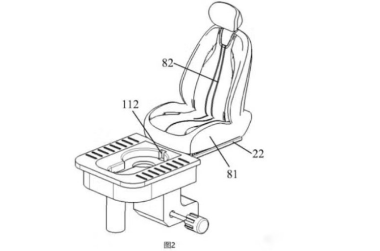A montadora chinesa Seres registrou na China a patente de um sistema inusitado: um vaso sanitário retrátil instalado sob o banco de veículos.