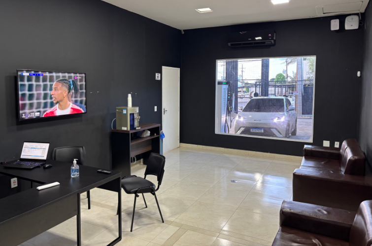 Outro diferencial é o ambiente pensado no conforto do cliente. O espaço conta com uma sala de espera equipada com televisão, ar-condicionado e estrutura adequada para quem precisa aguardar durante o carregamento. Apesar disso, a área interna ainda não opera em regime 24 horas.