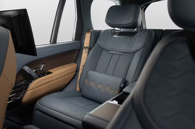 Já o Encontro das Águas eleva o nível da exclusividade: carroceria em dois tons — bronze, criado especialmente para o modelo, e azul no teto. Os emblemas da Range Rover são feitos artesanalmente em ouro maciço por uma tradicional família de joalheiros britânicos. O interior traz madeira de nogueira, costuras feitas à mão que evocam o movimento das águas e até almofadas sob medida. Nas soleiras das portas, a inscrição deixa claro: “1 of 1”.