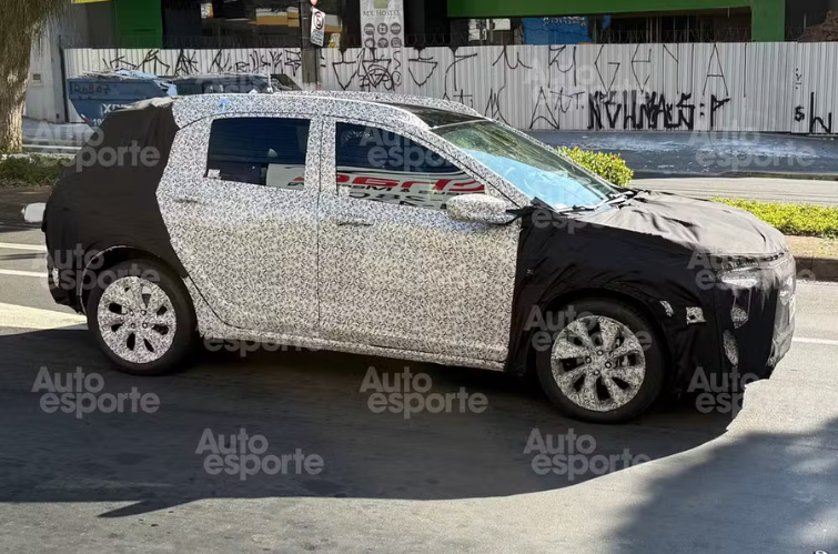 Flagras recentes revelam que o protótipo já roda com carroceria definitiva, mantendo diversos componentes do Onix, como portas, vidros e retrovisores. A coluna C foi redesenhada para reforçar a identidade SUV, e a traseira contará com novo caimento de teto, aerofólio e lanternas com assinatura exclusiva – sem a barra iluminada entre elas.