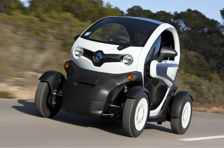 Com 2,33 metros de comprimento, o Twizy parece saído do futuro. Seu interior acomoda motorista e passageiro em fileira, e as portas abrem para cima. O motor elétrico traseiro entrega 17 cv e autonomia de até 100 km. Compacto e leve, é ideal para o trânsito urbano, mas não pode circular em rodovias.