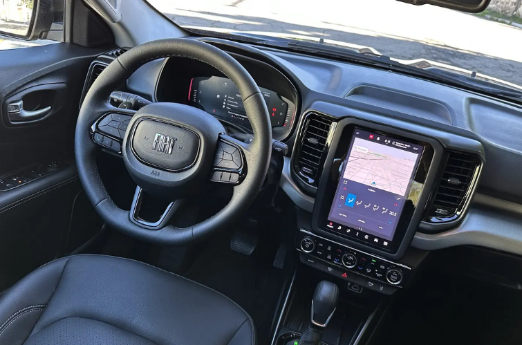 O quadro de instrumentos digital de 7 polegadas agora é de série em todas as versões. Para os entusiastas de tecnologia, a Fiat oferece o "Pack Tech" como opcional, que inclui uma central multimídia vertical de 10 polegadas (estilo Ram), frenagem automática de emergência e aviso de saída de faixa.