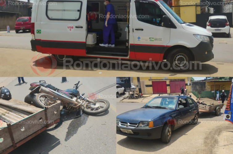 Colisão aconteceu quando o motorista de um carro fez conversão para entrar em um posto de combustível; vítima foi levada para a UPA.