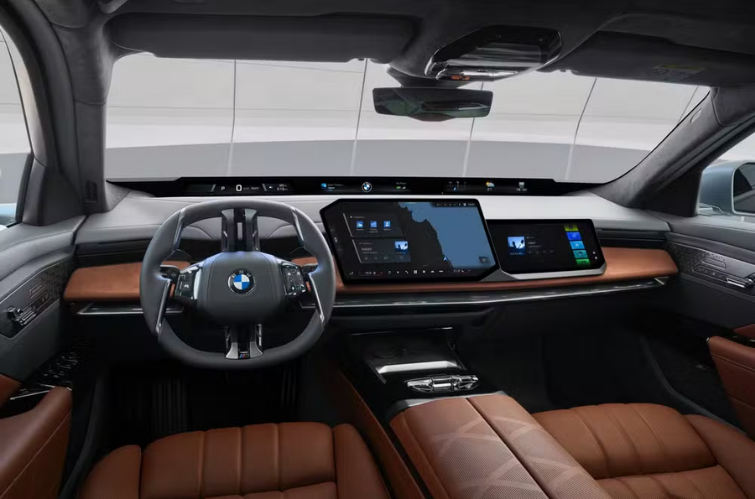 Por dentro, as mudanças são ainda mais profundas. O destaque fica para o novo sistema Panoramic iDrive, que traz projeção de informações no para-brisa e uma central multimídia flutuante de 17,9 polegadas.
