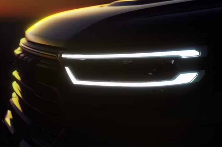Até então, apenas o conceito Nightfall havia sido apresentado. Agora, as fotos revelam a versão de produção com visual inspirado no protótipo, mas com linhas próprias. A dianteira exibe faróis estreitos com duplas faixas de LED, grade robusta e a tradicional assinatura Ram. Na traseira, novas lanternas e o nome da marca em alto relevo reforçam a identidade da caminhonete.