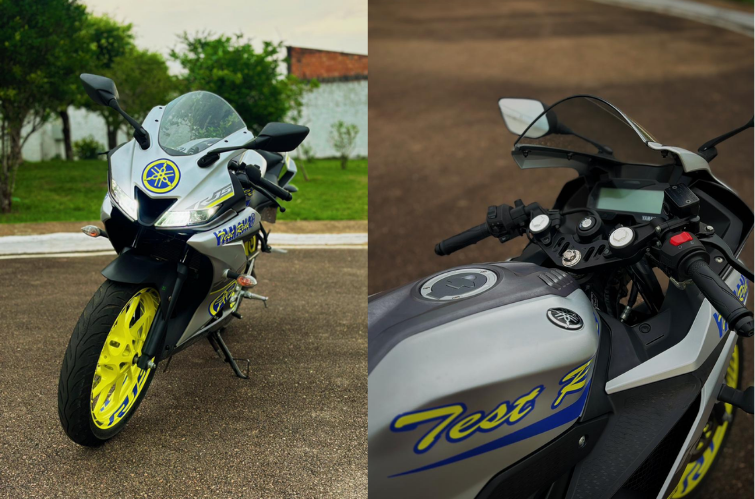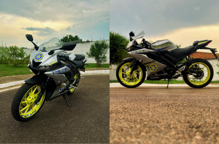 A R15 chama atenção logo de cara pelo design inspirado na linha R-Series, com carenagem agressiva, faróis duplos em LED e postura esportiva. Apesar do visual que remete a motos de maior cilindrada, o modelo mantém a praticidade de uma 150 cc, sendo leve, econômica e fácil de pilotar no trânsito do dia a dia.